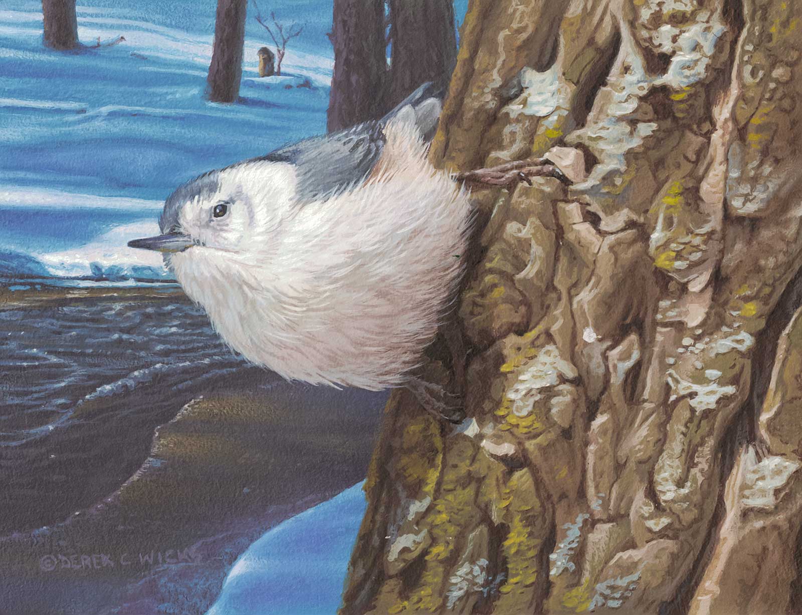 Inspired by a little White-breasted nuthatch that frequents my bird feeder daily.